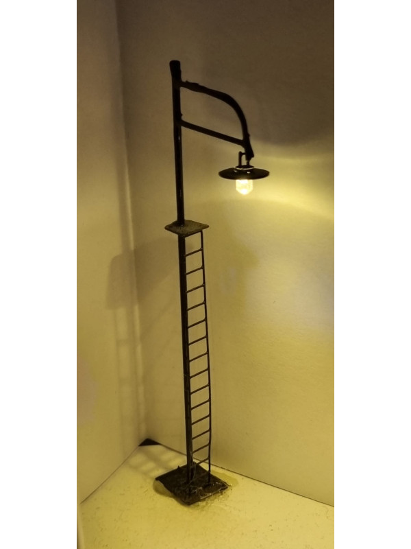 Mooie traplantaarn H0 er zit een 3v LED lampje in. Deze is aan te sluiten op elke trafo met onze gratis meegeleverde weerstandjes. 10,5 cm hoog zwart metaal