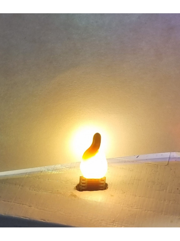 Mooie vlam die echt werkt. Werkt op 3v led en met onze bijgeleverde weerstandjes kunt u het aansluiten op elke treintrafo. Of vraag naar onze 3v trafo (7,50)