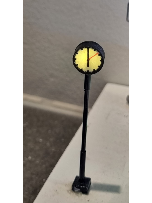 Mooie stationsklok zwart met verlichte wijzerplaat.