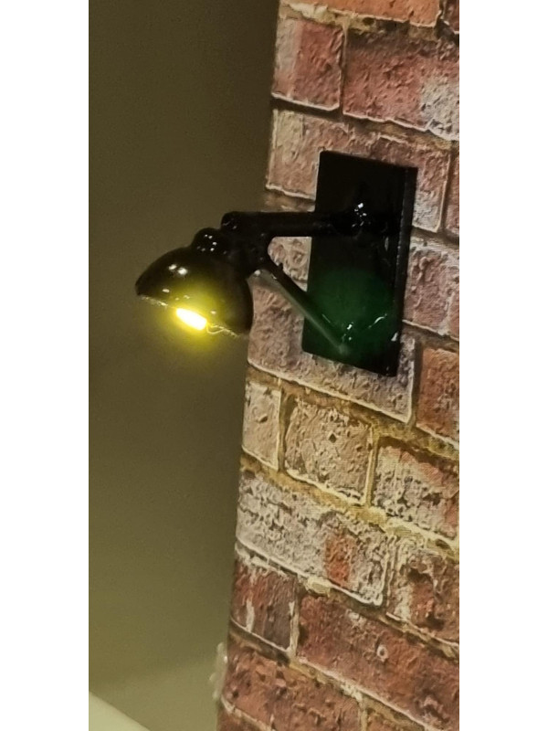zwarte metalen wandlantaarn voorzien van een 3v led lampje. Met de gratis meegeleverde weerstanden kunt u deze aansluiten op elke trafo.