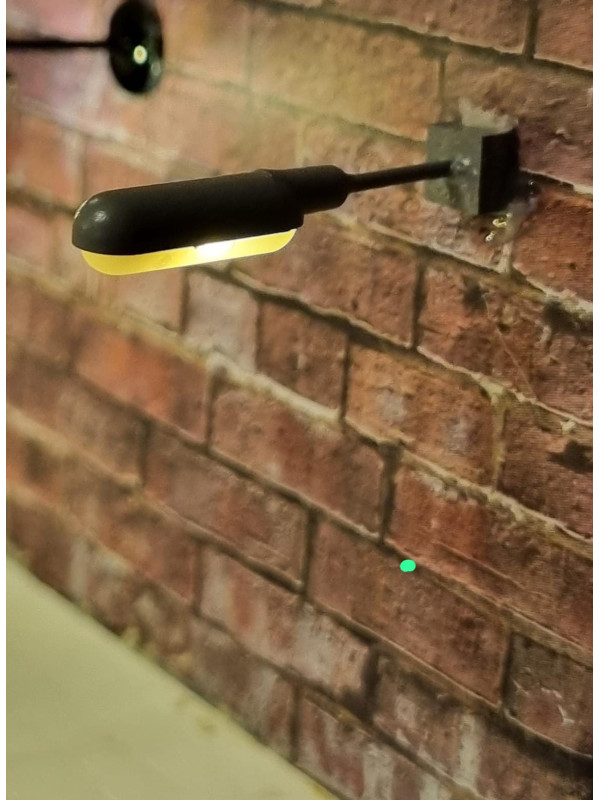 grijze wandlantaarn in de vorm van een soort tl verlichting. Prachtig op perrons.