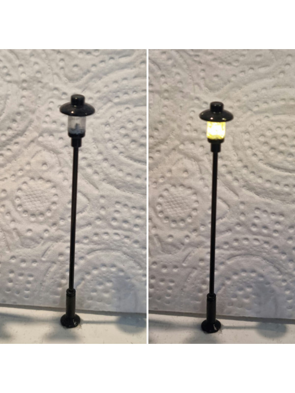 Voorzien van een 3v led lampje. Met de gratis bijgeleverde weerstandjes kunnen deze lantaarns aangesloten worden op elke trafo of vraag naar onze speciale 3v trafo waarop 50 ledlanpjes moeiteloos aangesloten kunnen worden.